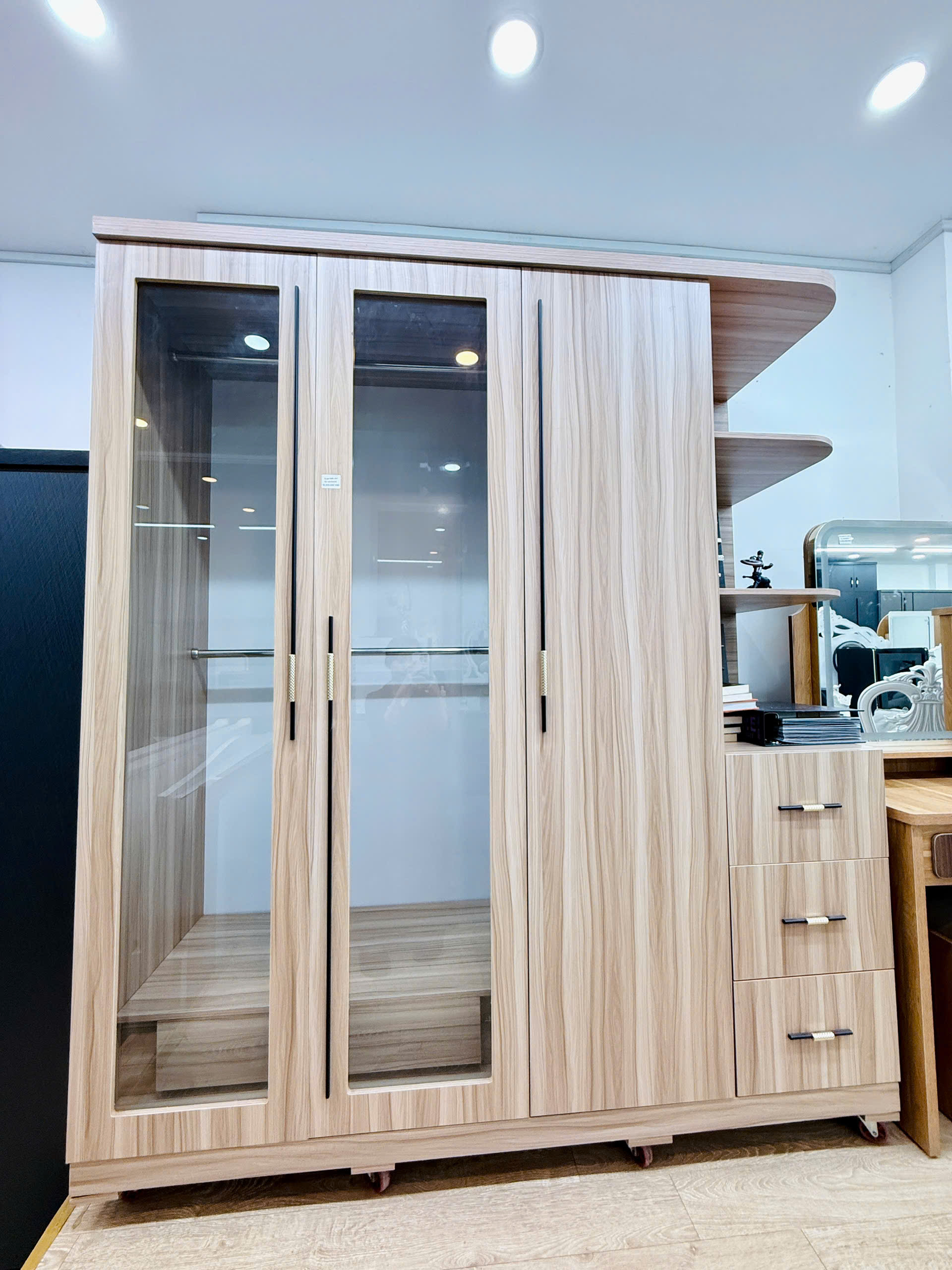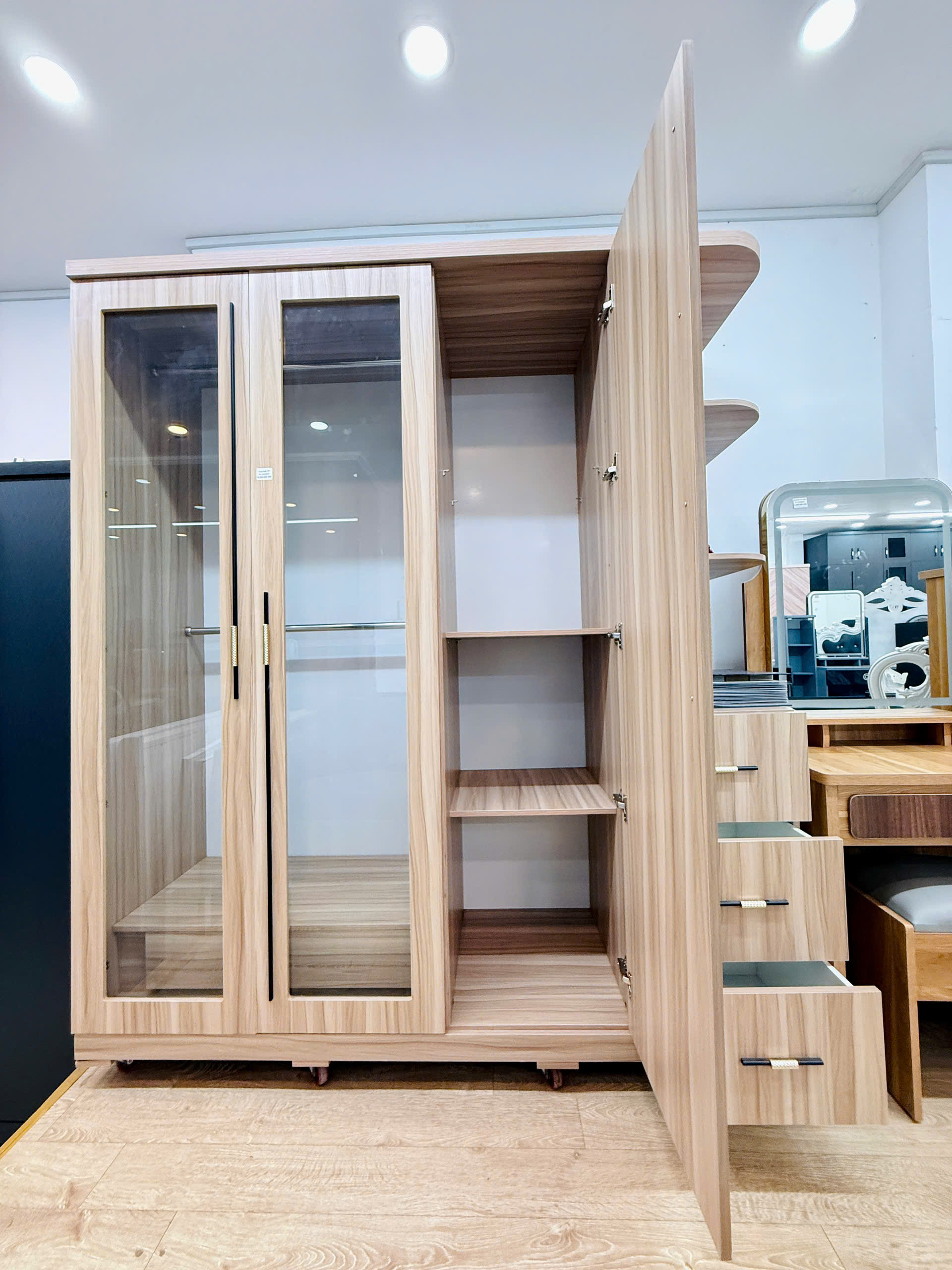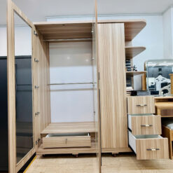• Tủ quần áo được thiết kế hiện đại với nhiều ngăn chứa và giá treo, giúp tối ưu hóa diện tích, giữ cho quần áo luôn gọn gàng, ngăn nắp. Sản phẩm phù hợp cho mọi không gian phòng ngủ, mang lại sự tiện nghi và thẩm mỹ cao.
