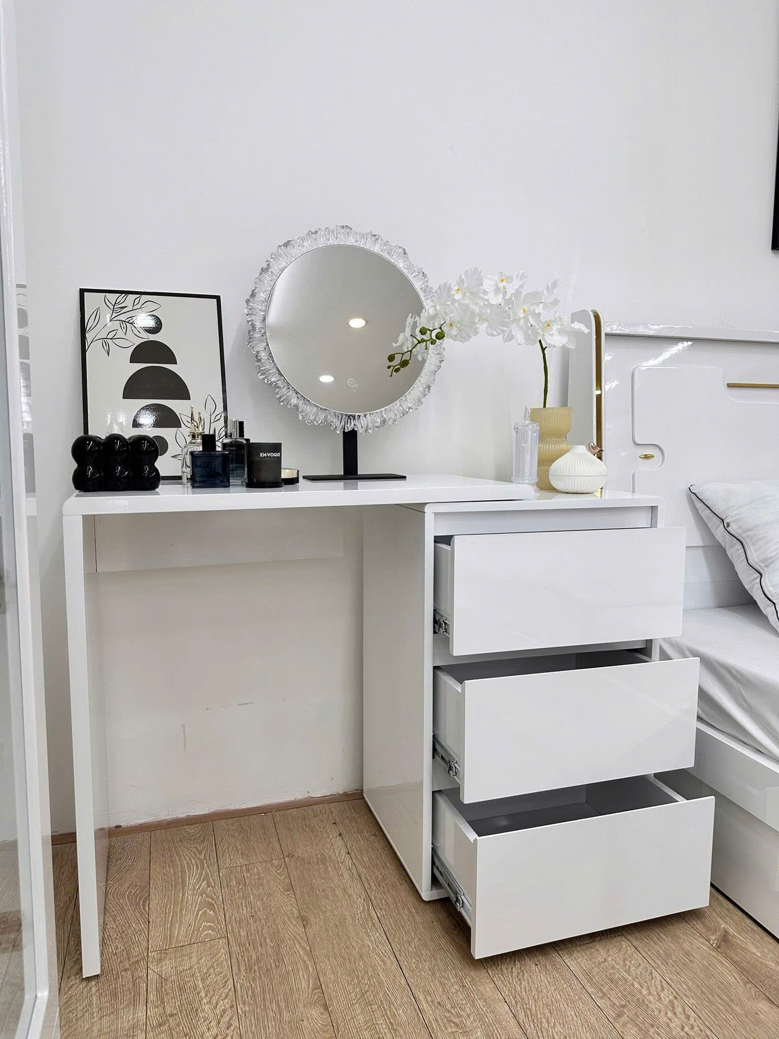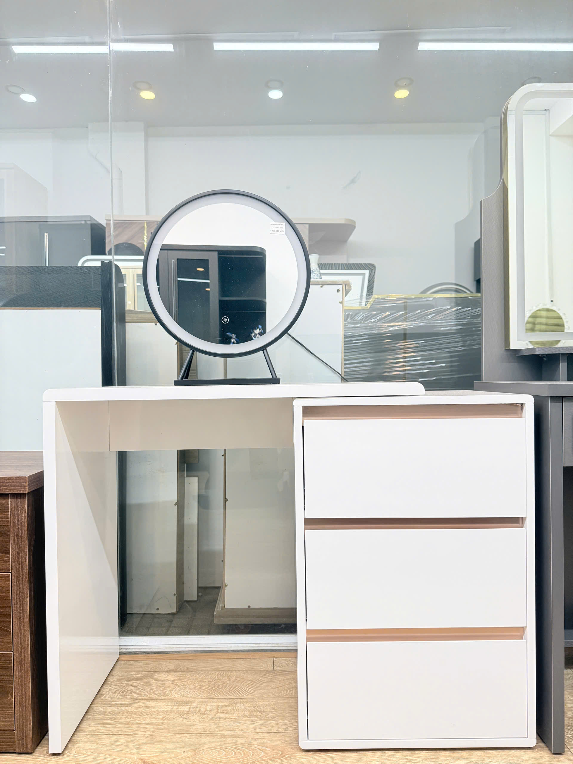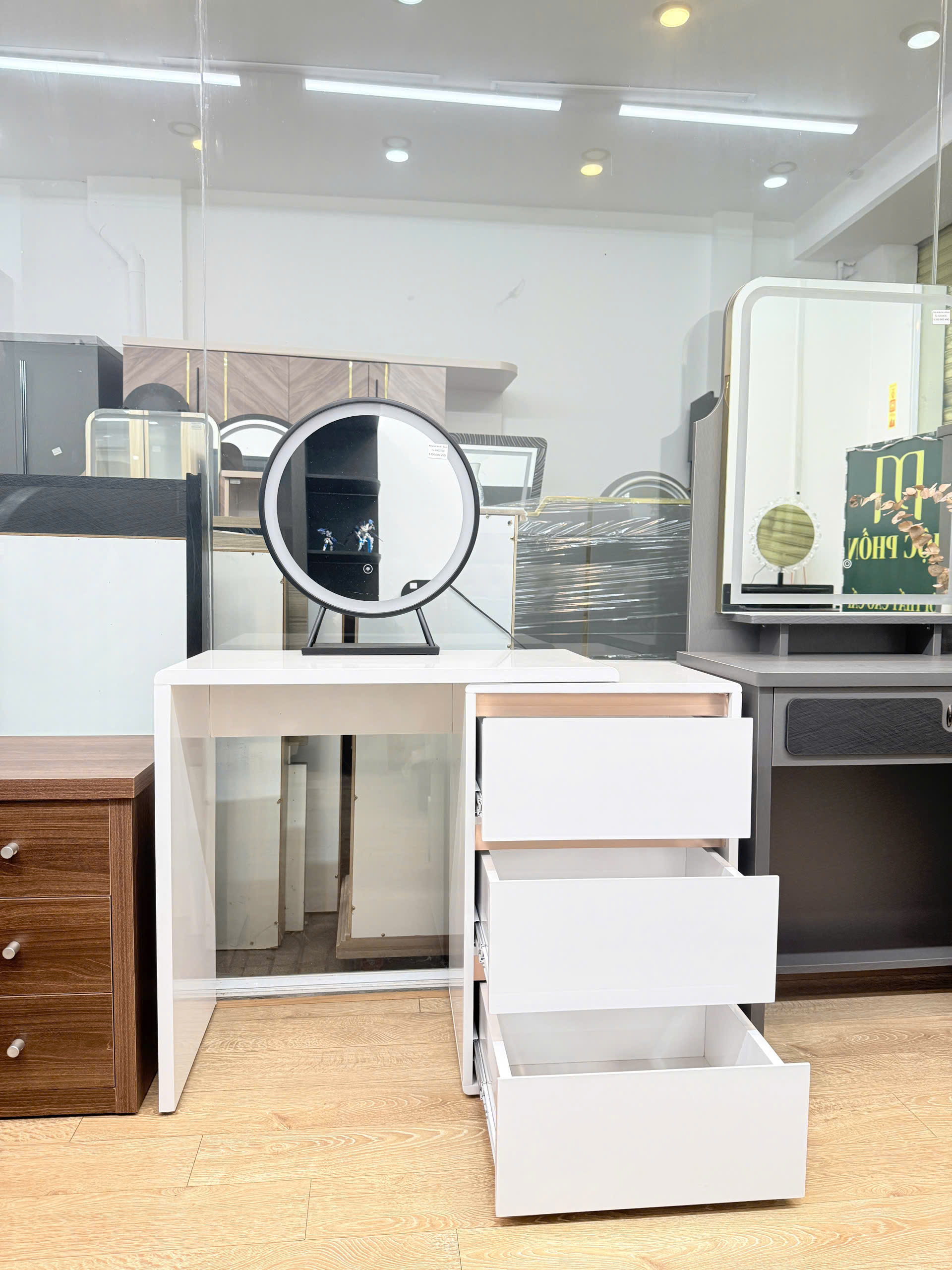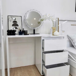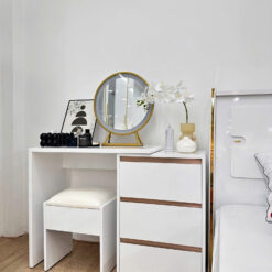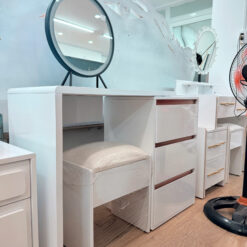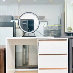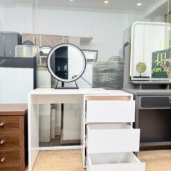 - Chiếc bàn trang điểm không chỉ là nơi lưu giữ những món mỹ phẩm yêu thích, mà còn là điểm nhấn nâng tầm không gian phòng ngủ của bạn. Với gương LED 3 chế độ ánh sáng hiện đại, sản phẩm mang lại trải nghiệm trang điểm tiện nghi, rạng rỡ trong mọi thời điểm trong ngày.
