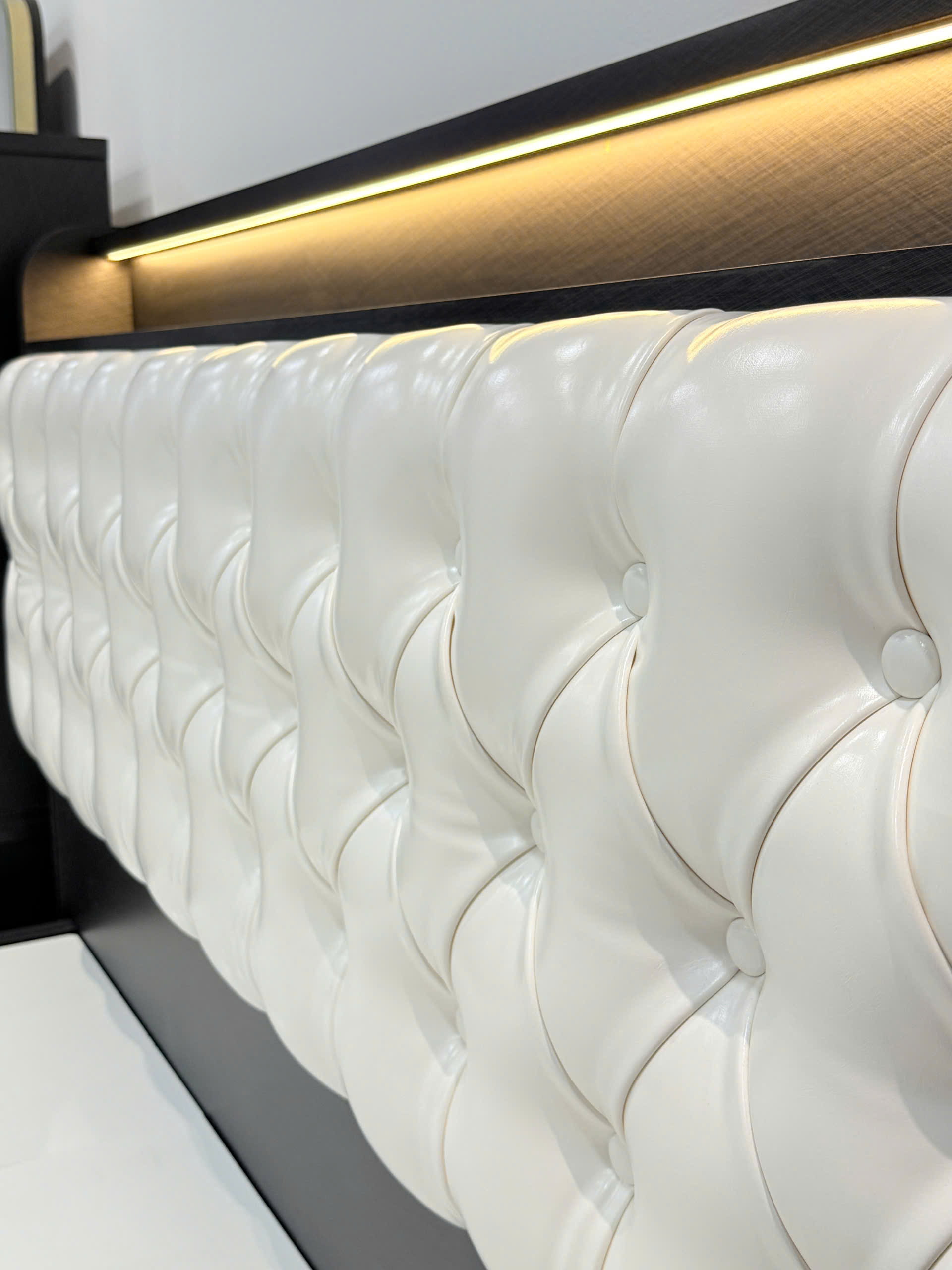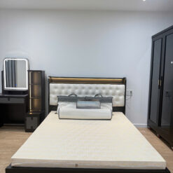 • Thiết kế hiện đại với đường nét tinh tế, sử dụng gỗ MDF phủ melamine chống trầy, bền đẹp và sang trọng, mang đến không gian phòng ngủ ấm cúng và đẳng cấp.
