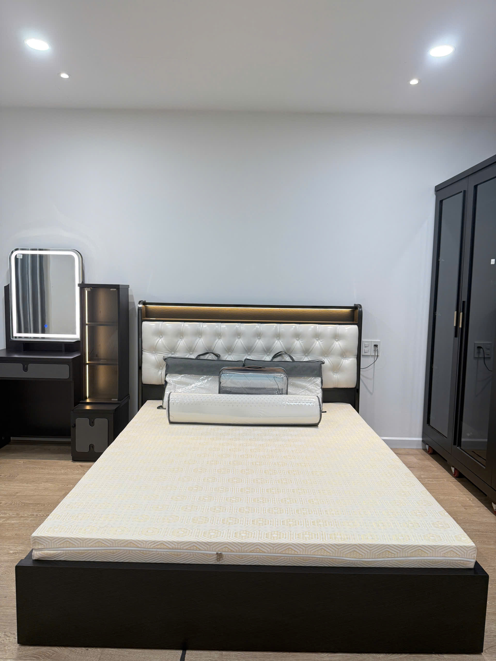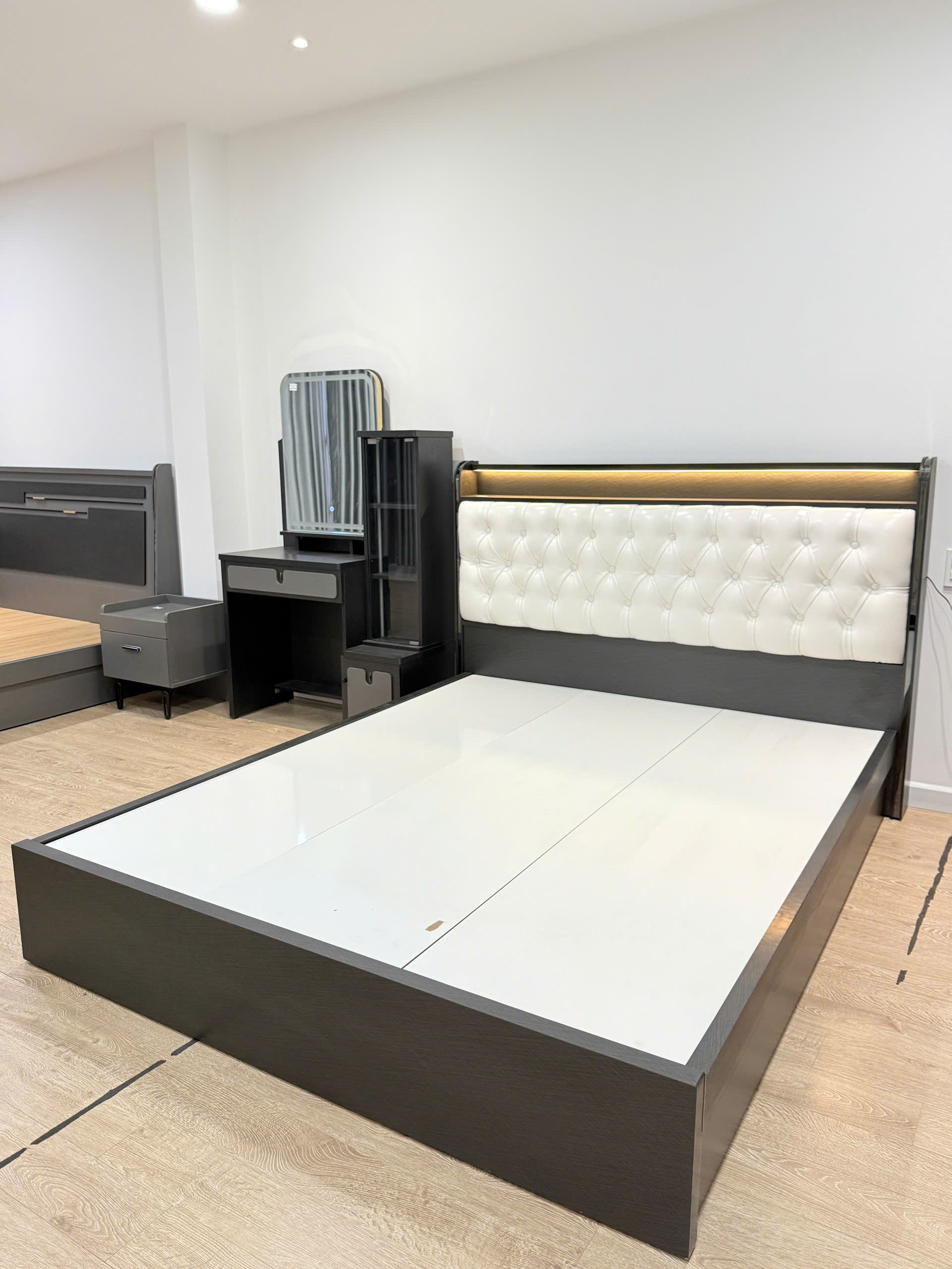 Giường ngủ xám tối, da trắng MD-01 có LED