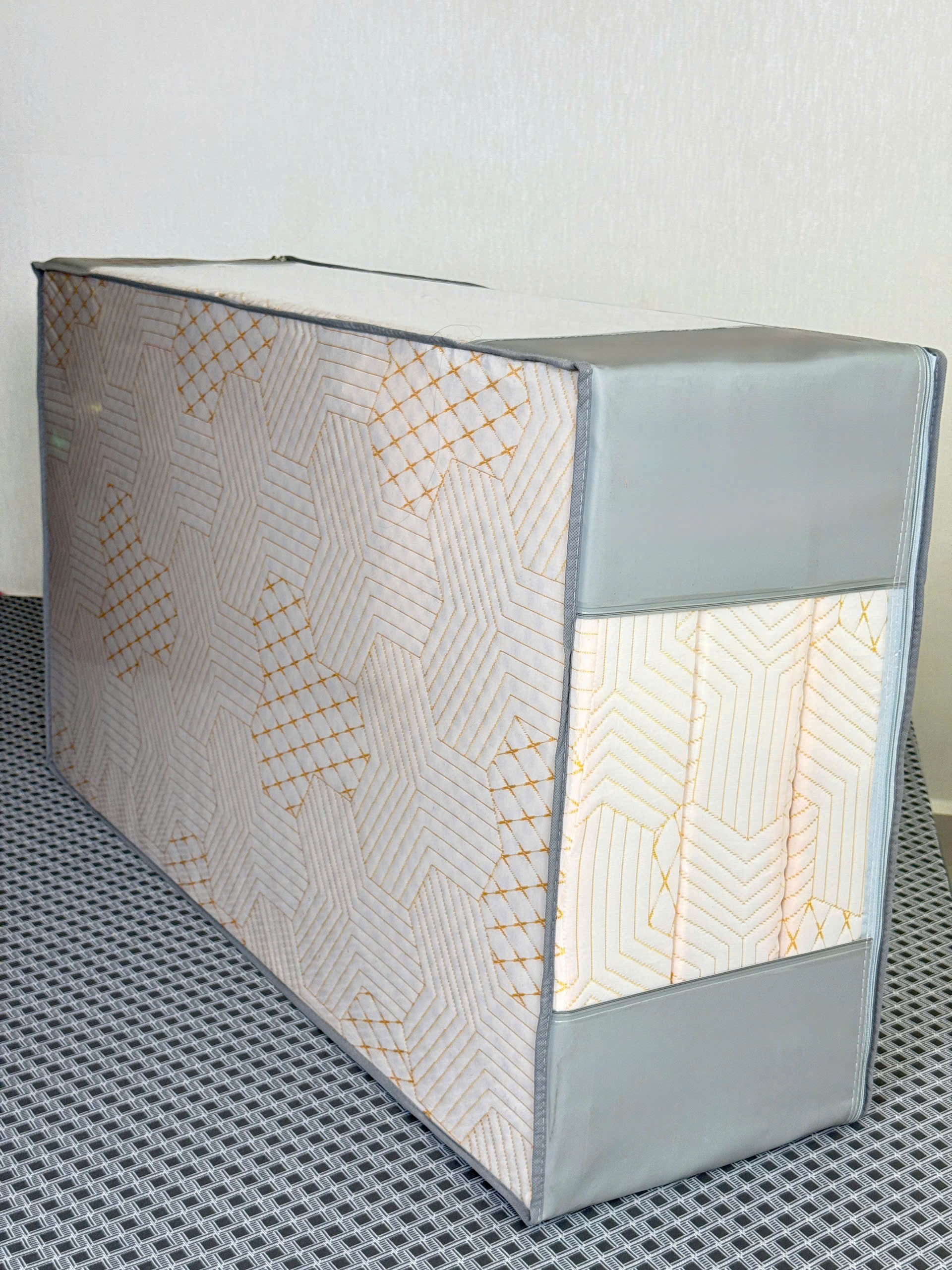 - Mặt bông ép được cấu tạo từ sợi bông Polyester cao cấp, ép cách nhiệt tạo thành khối chắc chắn. Nhờ vậy, nệm có độ phẳng hoàn hảo, hạn chế võng lưng hay đau nhức xương khớp, đồng thời đảm bảo độ bền, không xẹp lún, thoáng khí và thoát ẩm hiệu quả.