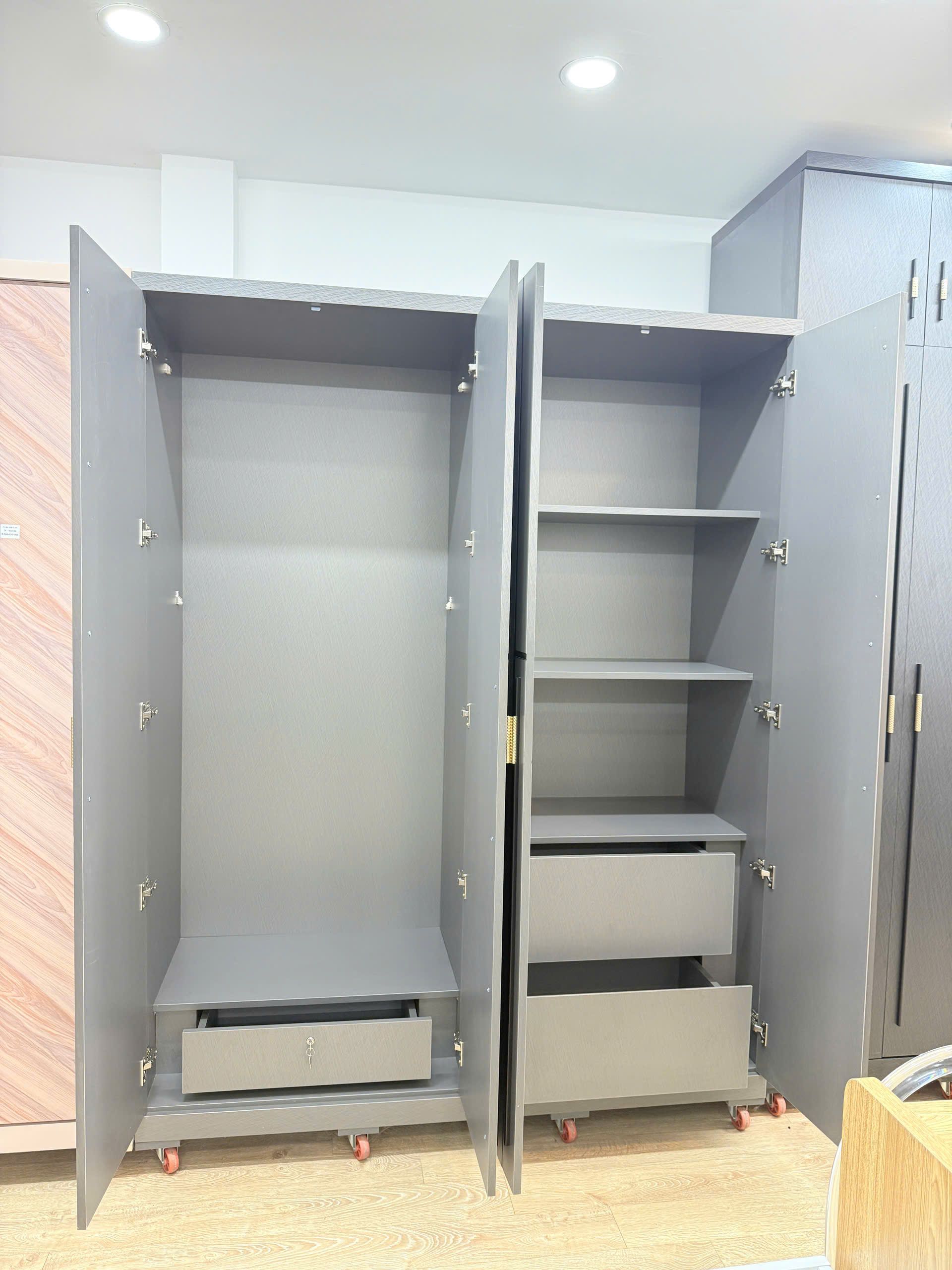 • Tủ quần áo được thiết kế hiện đại với nhiều ngăn chứa và giá treo, giúp tối ưu hóa diện tích, giữ cho quần áo luôn gọn gàng, ngăn nắp. Sản phẩm phù hợp cho mọi không gian phòng ngủ, mang lại sự tiện nghi và thẩm mỹ cao.