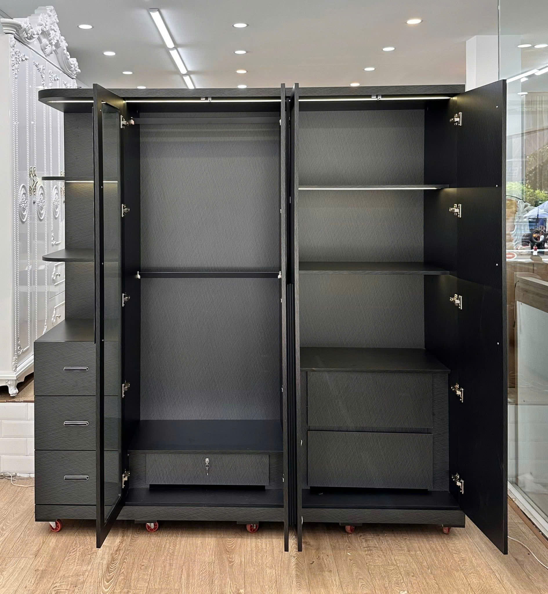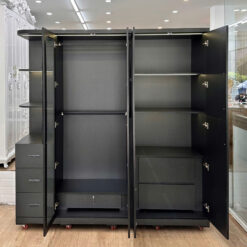 Dung tích lớn cùng hệ thống ngăn kéo và giá treo bố trí thông minh, giúp lưu trữ quần áo khoa học, ngăn nắp.
